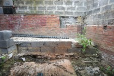 Rez: living avec arcade (25m² + 11,7m²) ouvert sur espace cuisine (à installer) en 2 pièces (7,3m² + 15,8m²), espace salle de bains (4,2m²) avec wc indépendant à installer+ raccordements (déjà effectués) et évacuations, cour couverte et emmurée.