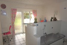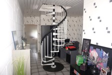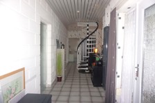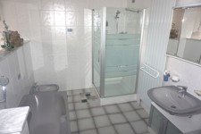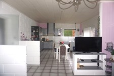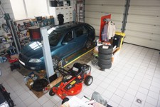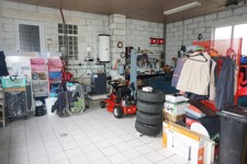 Rez: grand garage pour 2V (l=6,6m et L=8m) avec porte sectionnelle électrique, pont élévateur avec 4 pieds et accès à l'intérieur de la maison, hall d'entrée (13,4 m²) ouvert sur le bureau (12 m²), wc indépendant avec lave mains (2 m²), salle de bains avec baignoire, douche, bidet, meuble évier et buanderie (13,6 m²) donnant accès à l'extérieur, living (45 m²) donnant sur la cuisine équipée (taque au gaz avec bonbonne) + accès à la terrasse, chambre 1 avec placards intégrés (20,25 m²).