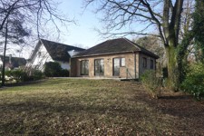 Rez: hall d'entrée (5,5 m²), wc indépendant avec lave mains (1,5 m²), living avec portes en verre et 2 portes fenêtres donnant sur la terrasse (40 m²), cuisine équipée (11 m²) avec accès à l'extérieur, buanderie (9 m²) avec escalier vers le sous-sol, hall de nuit (4 m²), 2 chambres (12,5 m² + 12,5 m²) avec porte fenêtre, salle de bains carrelée (4,25 m²) avec douche, baignoire et meuble évier.