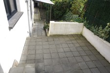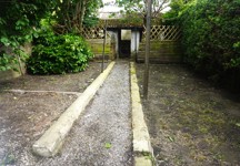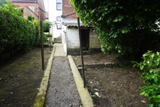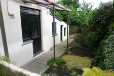 Terrain: garage (3 x 4,58m), passage latéral privatif avec porte, petite terrasse carrelée, jardin, 2 remises.