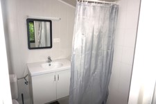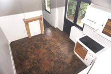 Rez: hall d'entrée (8m²), en enfilade : salon (20m²), salle à manger (12m²) avec feu ouvert à bois, cuisine semi-équipée en contrebas (12m²), , salle de douche avec wc ( 2.4m²) + un coin buanderie