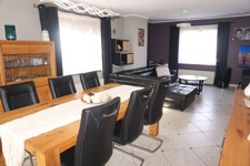 Sous-sol: entièrement aménagé et carrelé (+ parquet) avec 1 chambre (17,4m²), salle de douche carrelée avec douche et meuble évier (3,2m²), chaufferie (8,5m²), cellier (3m²), buanderie (10,5m²).