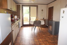 Rez: hall d'entrée (5,3m²), bureau ou pièce de séjour actuellement agencé en chambre (14,5m²), living ou salle à manger (25,5m²) avec cheminée et porte d'accès à un passage latéral vers le jardin, salon (12,5m²), cuisine semi-équipée (19m²) avec 2 accès possibles à l'extérieur, espace repas + coin buanderie, salle de bains avec cabine de douche (à jets et avec siège), meuble lavabo, wc, chauffe-eau (3m²), 2 débarras.