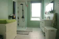 Rez: sas d'entrée avec porte en verre (2,7m²), beau living (45m²), dégagement vers la cuisine (5,6m²), wc indépendant avec lave-mains (2m²), belle cuisine (11,5m²) équipée neuve (2024) avec porte-fenêtre donnant sur la terrasse (11,5m²), buanderie/chaufferie (5m²) avec extracteur d'air automatique.