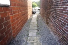 Terrain: passage latéral privatif (1,7m de largeur) avec barrière en fer, terrasse neuve en klinkers, jardin clôturé, à +- 50m de la maison un garage situé à l'Impasse Faflotte.