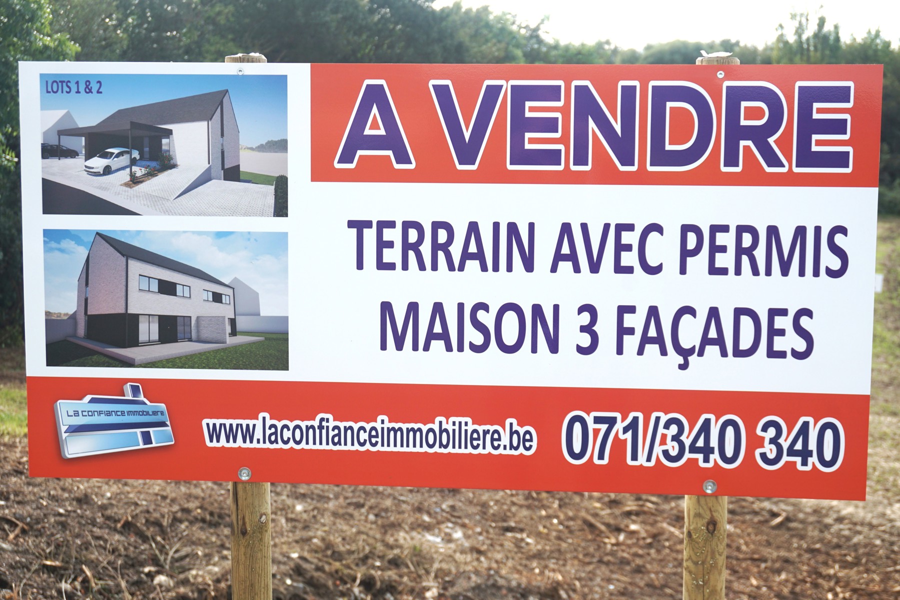 La Confiance Immobilière vous présente ce terrain à bâtir contenant 10 parcelles avec permis octroyé pour la construction de 5 blocs de 2 maisons 3 façades, l'espace entre le...